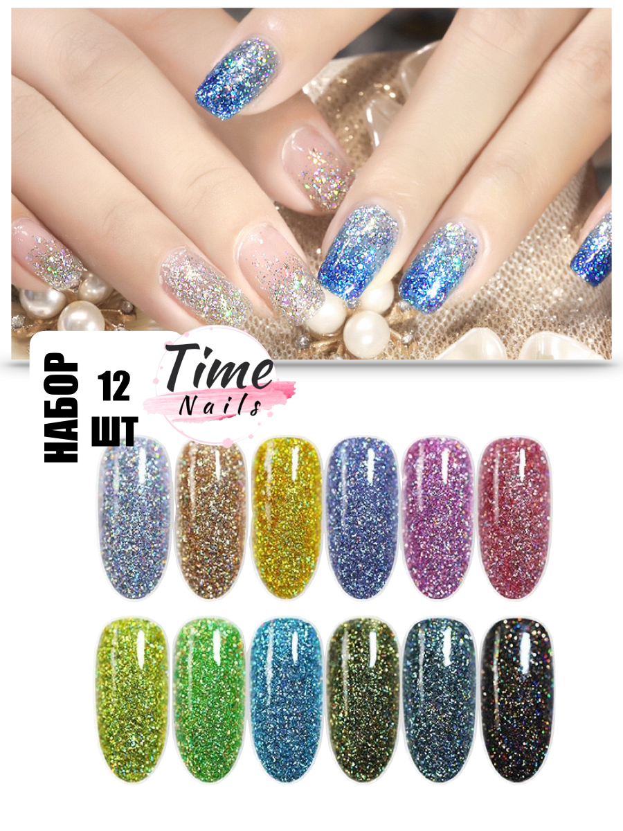 10 цен на Блестки для ногтей и творчества голография набор 12шт
