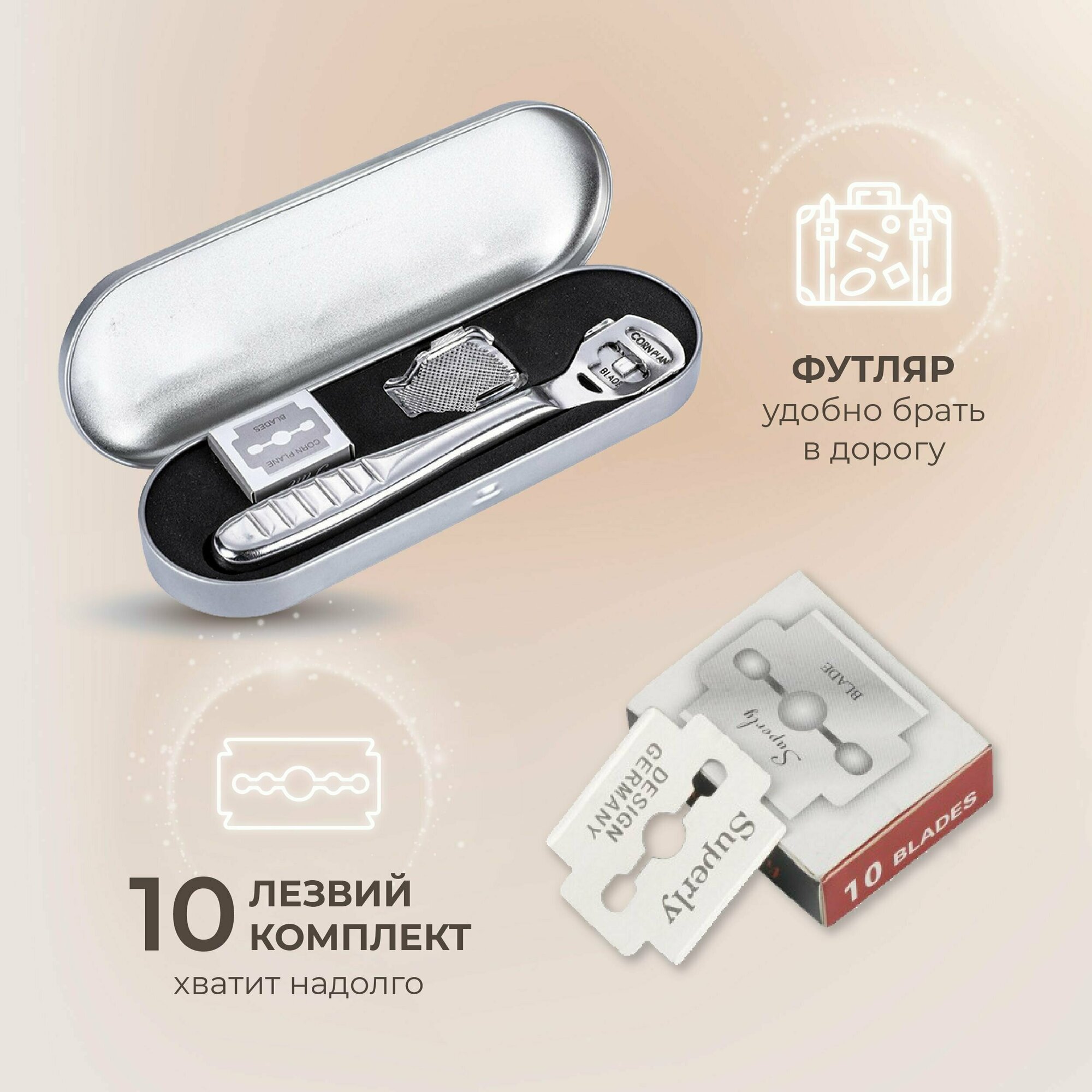 Отзывы на Станок для педикюра с комплектом 10 лезвий в футляре, скребок для пяток