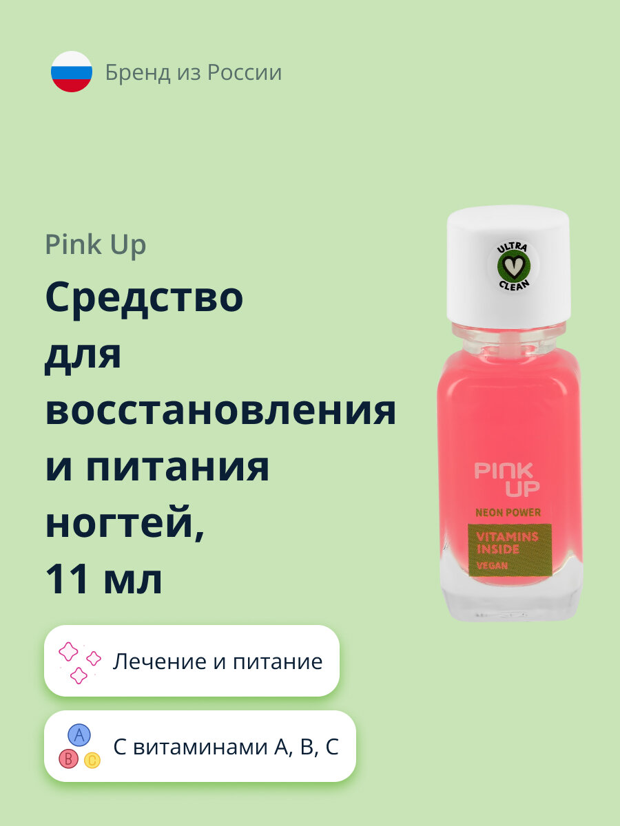 10 цен на Средство для восстановления и питания ногтей PINK UP NEON POWER с витаминами А, В, С и экстрактом арбуза 11 мл