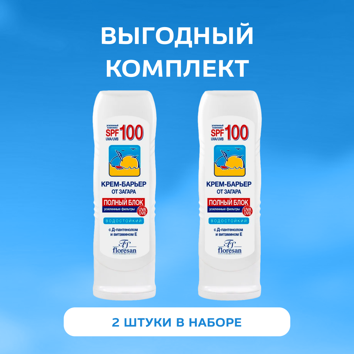 10 цен на Крем барьер Floresan от загара водостойкий SPF 50 125 мл 2 шт