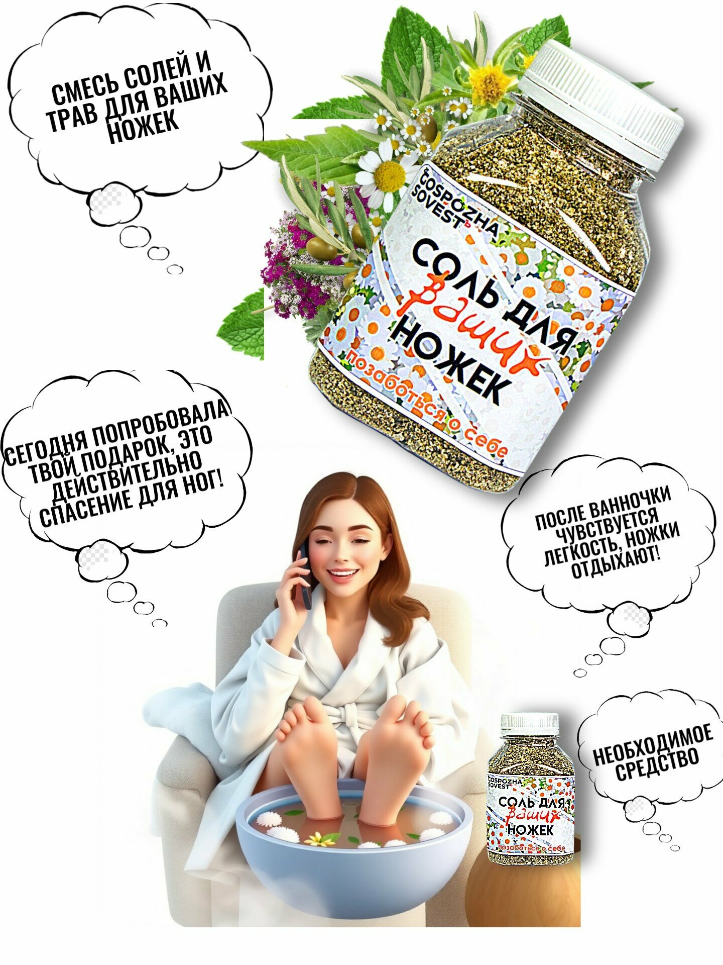 Средство для ног, морская соль от грибка ногтей на ногах смесь солей и трав для ванночек информация: