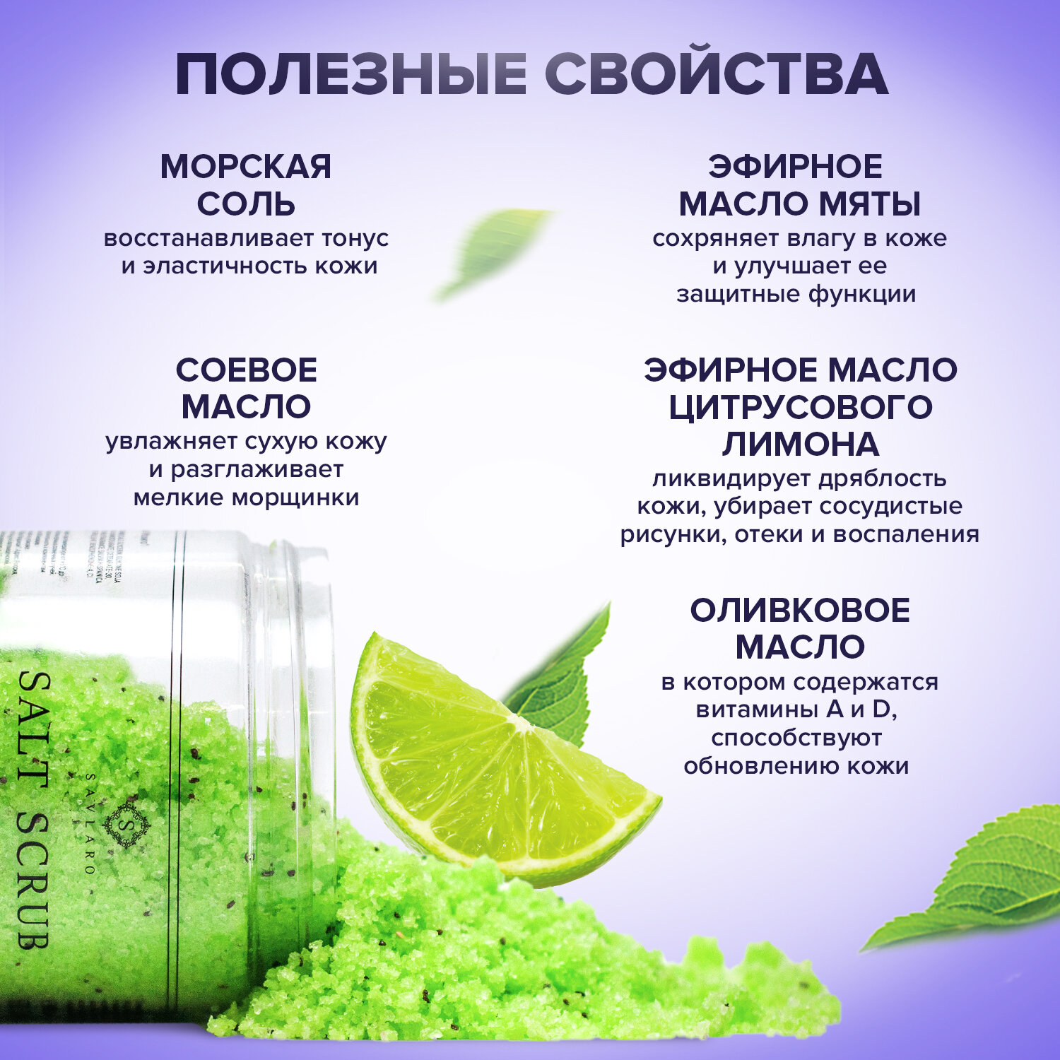 Скраб для тела антицеллюлитный Savlaro с маслами солевой Мохито 600гр информация: