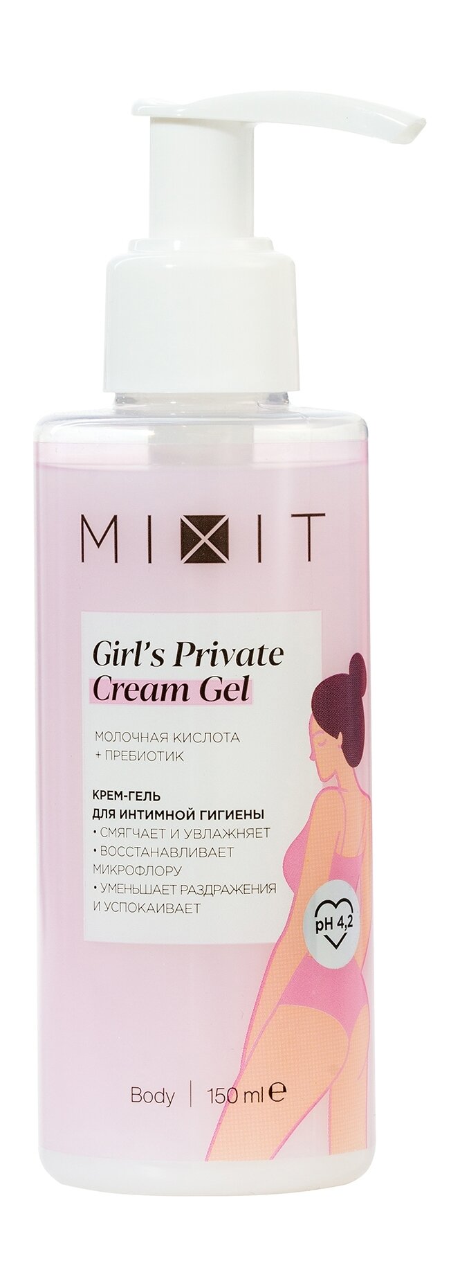 10 цен на MIXIT Крем-гель для интимной гигиены MIXIT с молочной кислотой и пребиотиком смягчающий, 150 мл