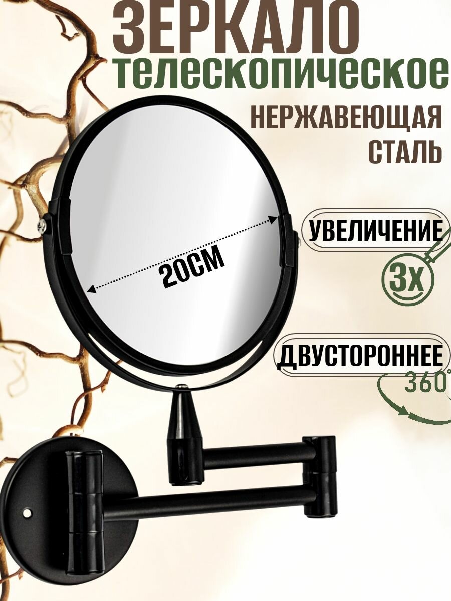 Зеркало косметическое настенное, раздвижное, на коленце, нержавеющая сталь, цвет черный информация: