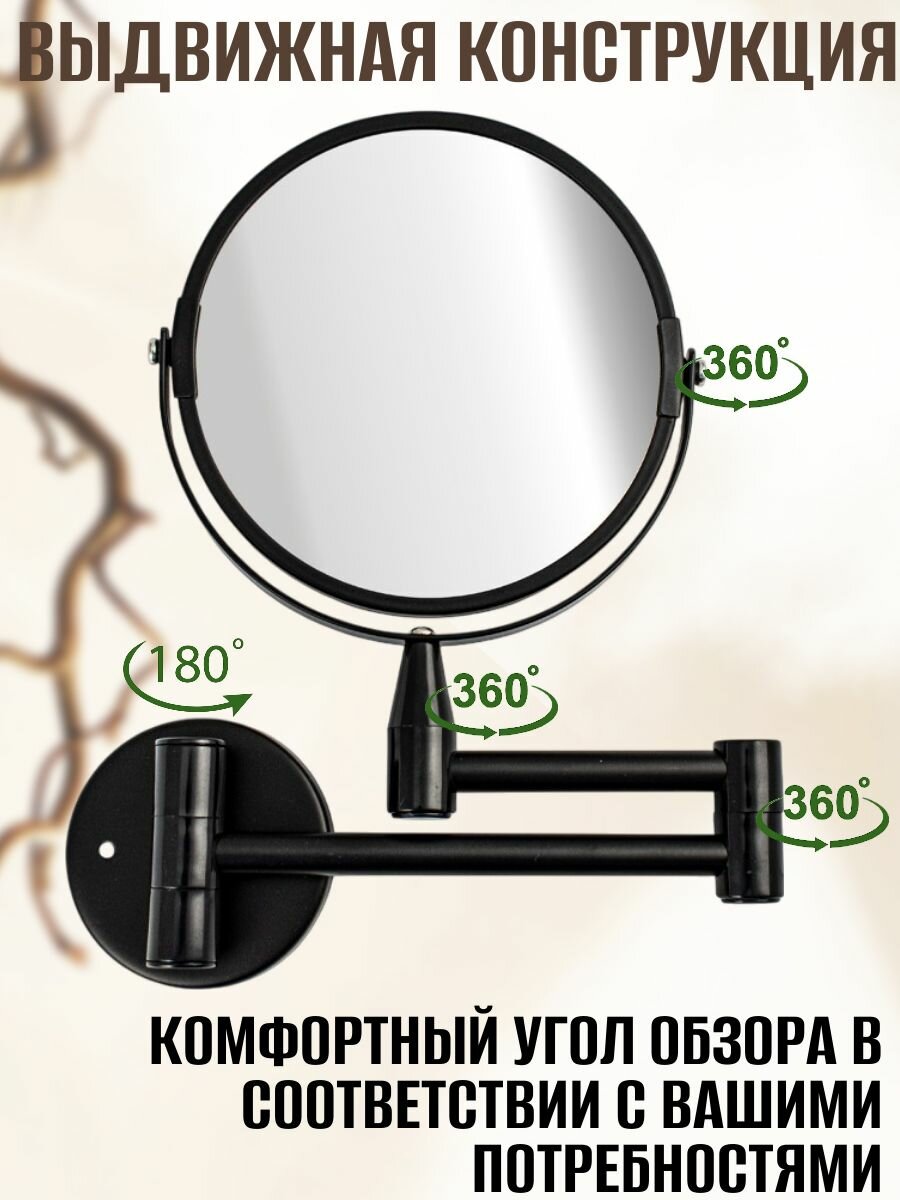 10 цен на Зеркало косметическое настенное, раздвижное, на коленце, нержавеющая сталь, цвет черный