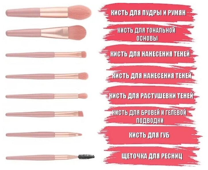 10 цен на Кисти для макияжа профессиональные персиковые набор. Кисть для бровей глаз губ теней в чехле футляре 8шт. Себе и в подарок.