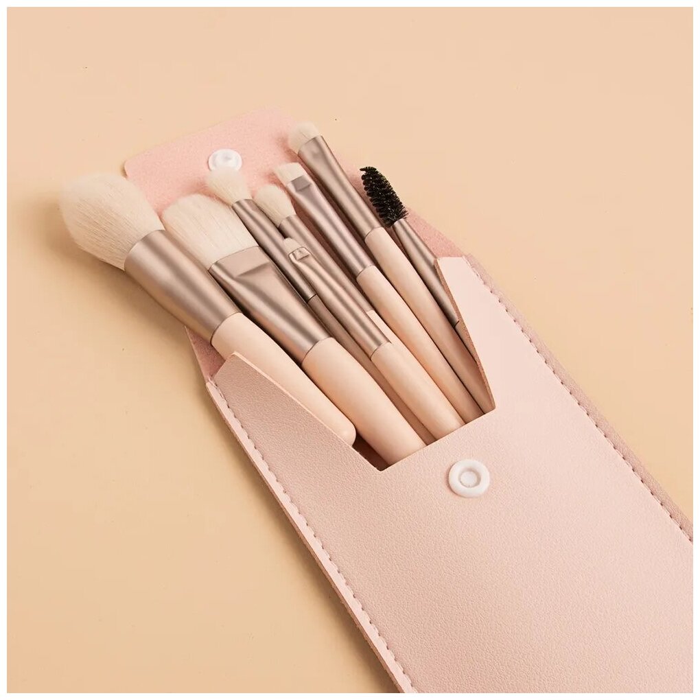 Кисти для макияжа профессиональные бежевые набор. Кисть для бровей глаз губ теней в чехле футляре 8шт. Себе и в подарок. информация: