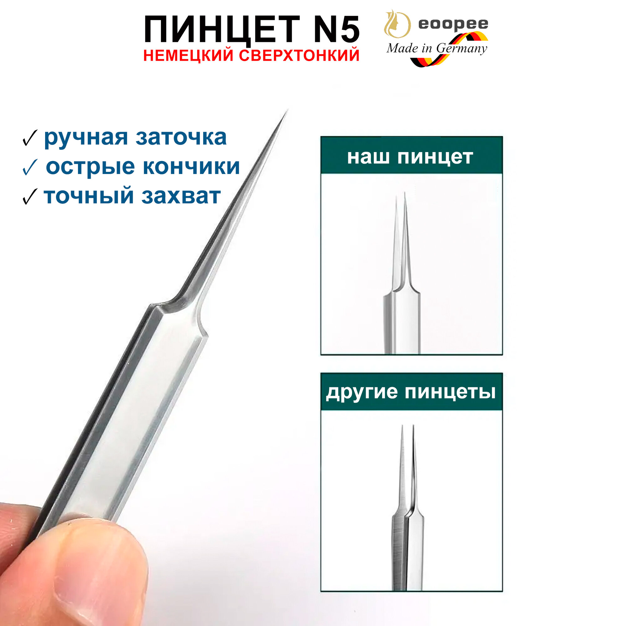 | Комплектация | Немецкий сверхтонкий пинцет N5 с изогнутыми кончиками 117мм - 1шт |