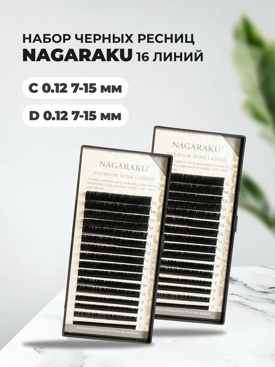 Набор черных ресниц Nagaraku (Нагараку), Миксы, 16 линий С 0.12 7-15mm и D 0.12 7-15mm информация: