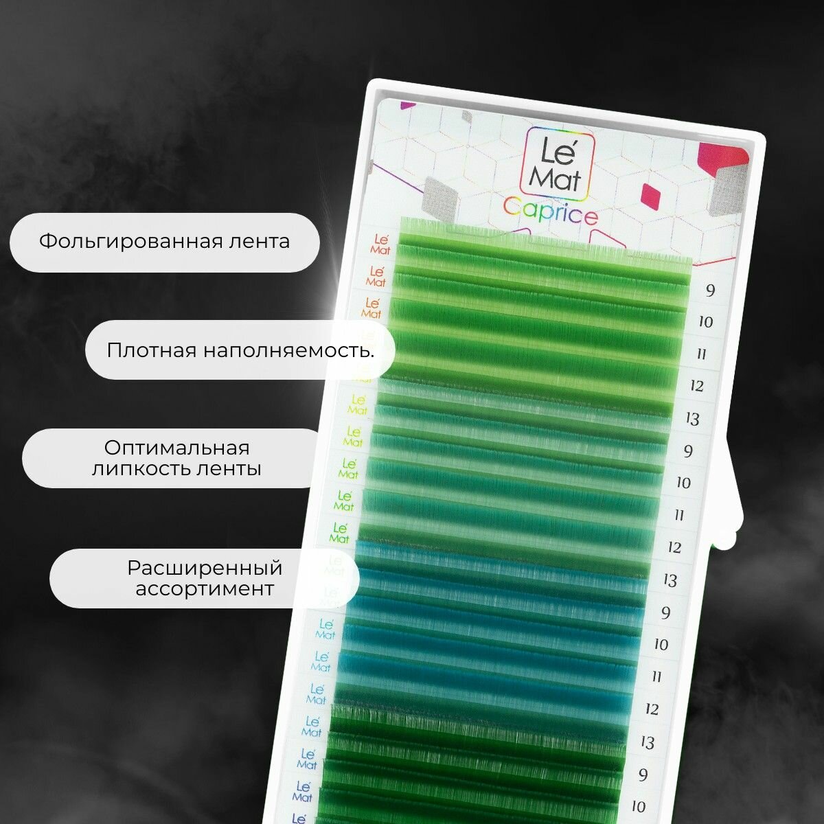 Ресницы для наращивания GREEN M 0.10 7-13 mm "Caprice" 20 линий mix Le Maitre / Le Mat (Ле Мат / зеленый микс цветные) 884 ₽