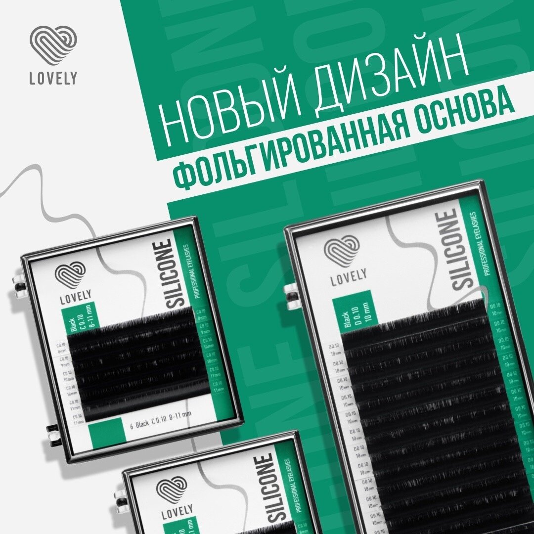 Ресницы чёрные Lovely "Silicone" MIX (D 0.10 6-13мм) 869 ₽