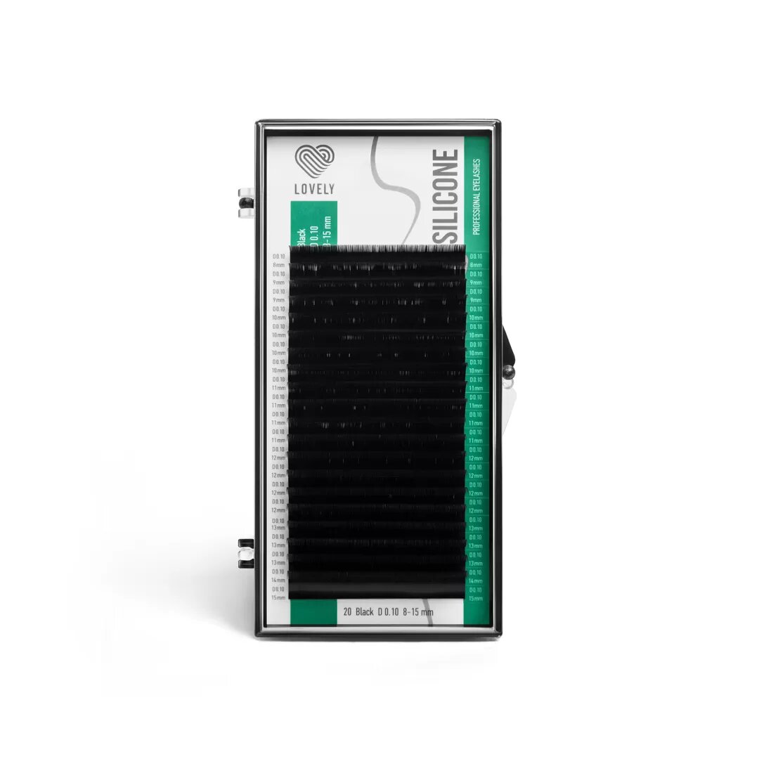 LOVELY Ресницы черные Silicone - 20 линий, MIX (изгиб C; толщина 0,10; длина 8-15)