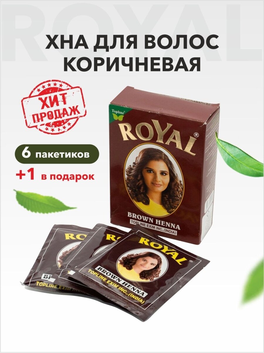 Хна "Royal" Brown (коричневая) в коробке 7 пакетиков по 10 гр.