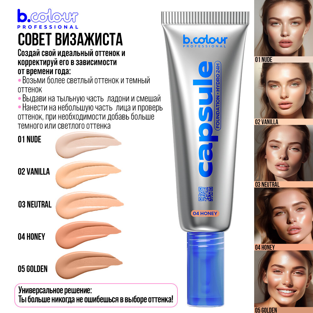 B.COLOUR PROFESSIONAL Тональный крем для лица матирующий, увлажняющий, стойкий CAPSULE 04 HONEY 673 ₽
