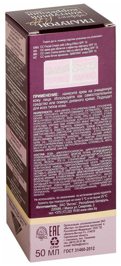 Витэкс Крем для лица СС гиалурон LIFT с эффектом лифтинга 50 мл информация: