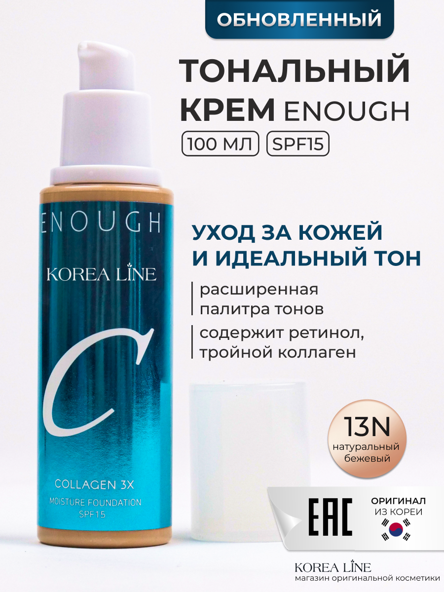 10 цен на Тональный крем для лица ENOUGH Collagen 3x Moisture Foundation SPF15, увлажняющий с коллагеном, тон 13N, натуральный - бежевый, 100 ml