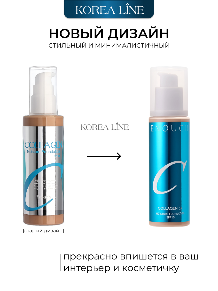 Original Тональный крем для лица ENOUGH collagen3x, с коллагеном, тон 21N, бежевый, 100 ml информация: