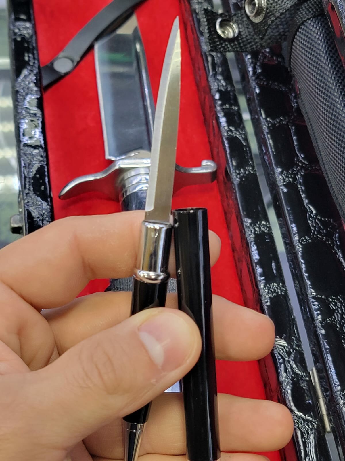 | Дополнительная информация | Нож с чехлом в подарочном футляре и ручка -нож красная |