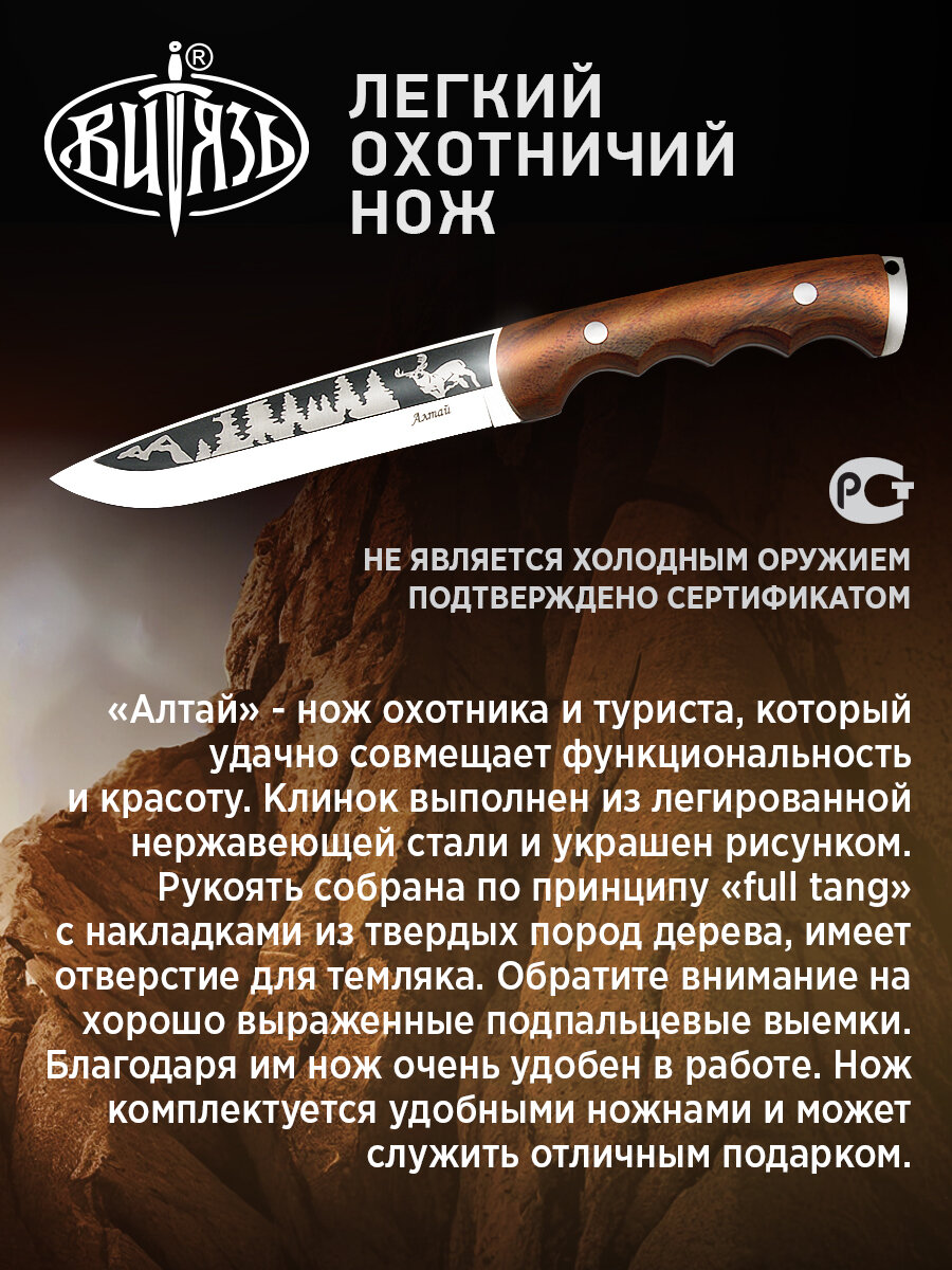 Ножи Витязь B121-33 (Алтай), удобный походный нож с фиксированным клинком. информация: