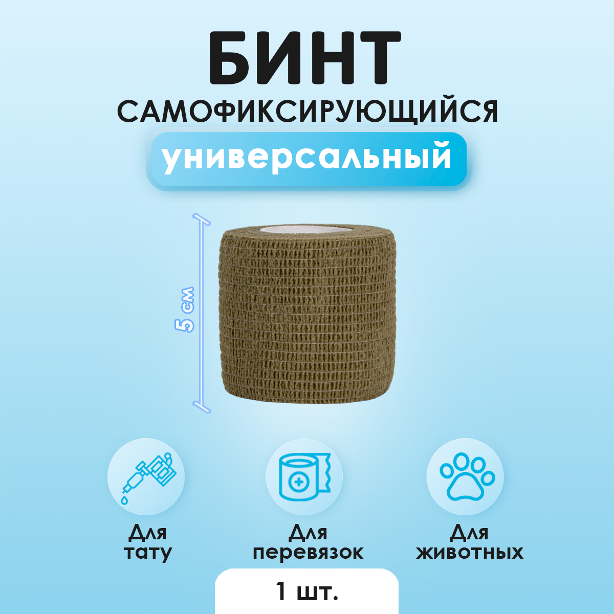 Бинт (бандаж) универсальный эластичный самофиксирующийся, для тату, животных и перевязок, ВК-Фикс, 5см