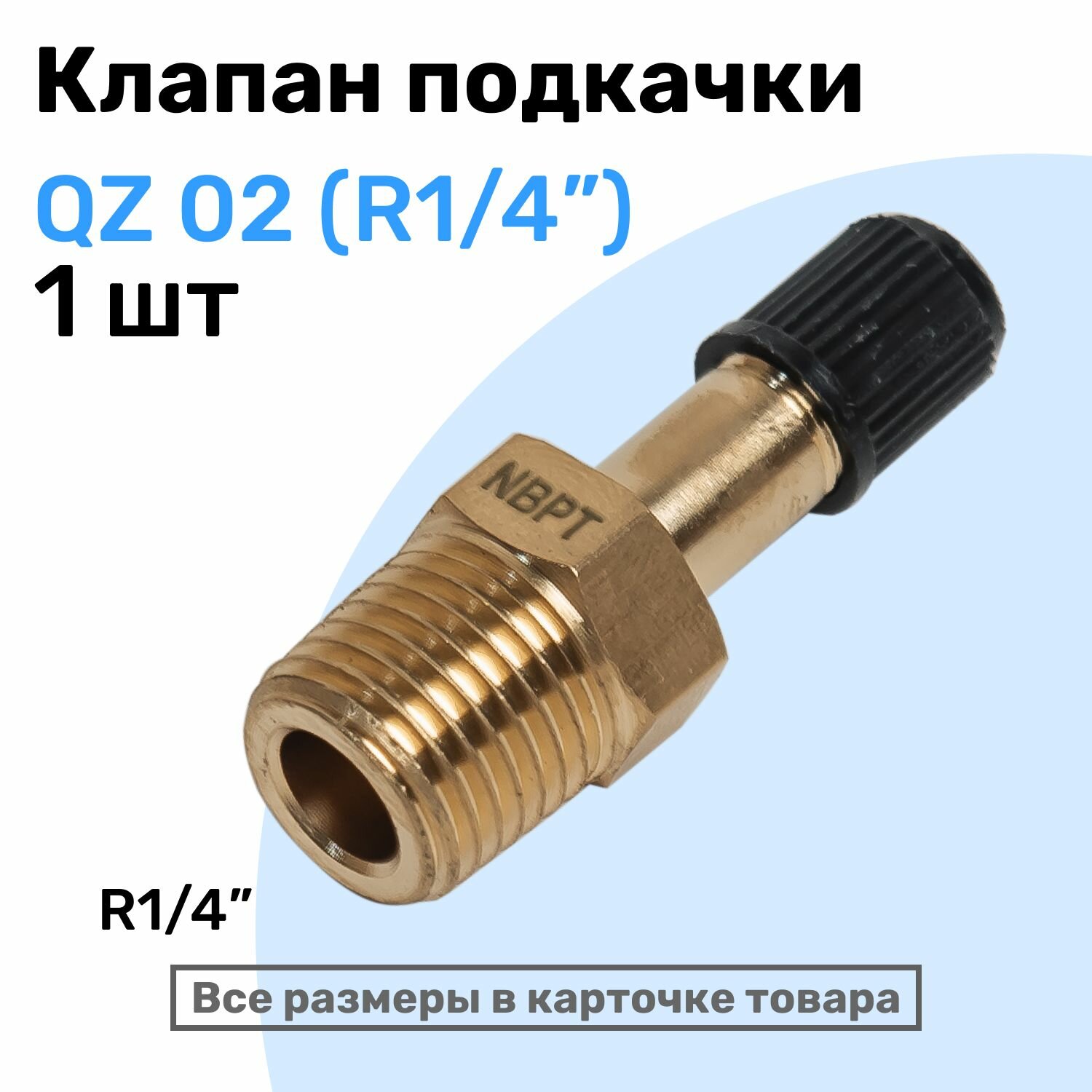 Клапан подкачки QZ 02 - R1/4", Ниппель с золотником, штуцер для подкачки, NBPT информация: