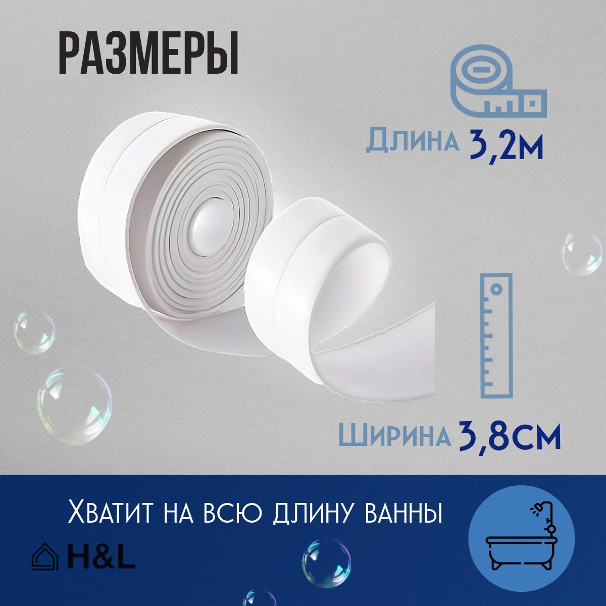 Лента бордюрная, Клейкая лента для ванны 38 мм 3.2 м, 1 шт /бордюрная лента для ванны/лента бордюрная для ванны/лента для ванн бордюрная информация: