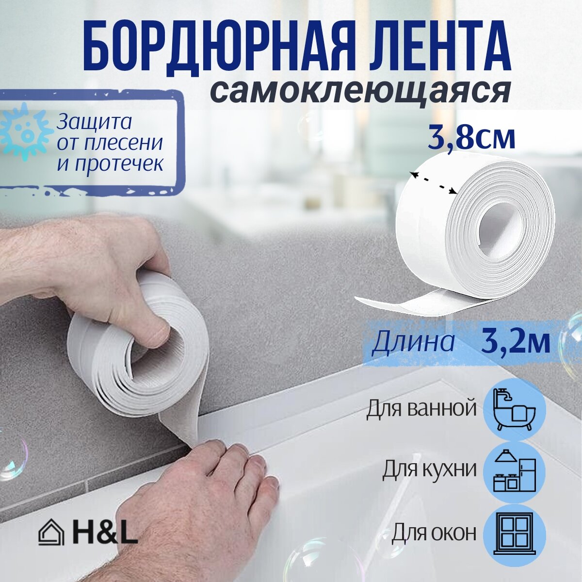 10 цен на Лента бордюрная, Клейкая лента для ванны 38 мм 3.2 м, 1 шт /бордюрная лента для ванны/лента бордюрная для ванны/лента для ванн бордюрная