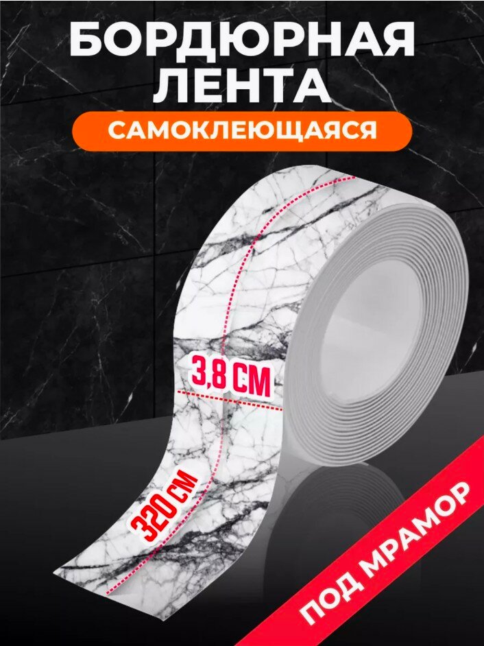 10 цен на Лента бордюрная мрамор, водонепроницаемая длина 3.2м., ширина 3.8см. Защита от воды, жира, грязи, плесени