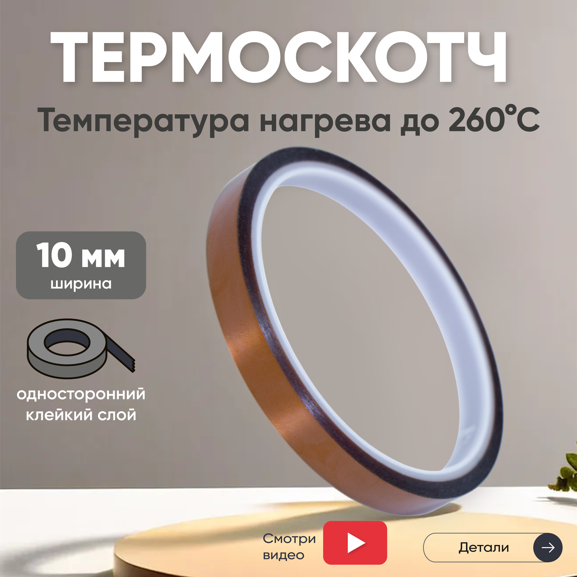 Отзывы на Термостойкая клейкая лента (термоскотч) шириной 10 мм, 33 метра, нагрев до 260 градусов Цельсия