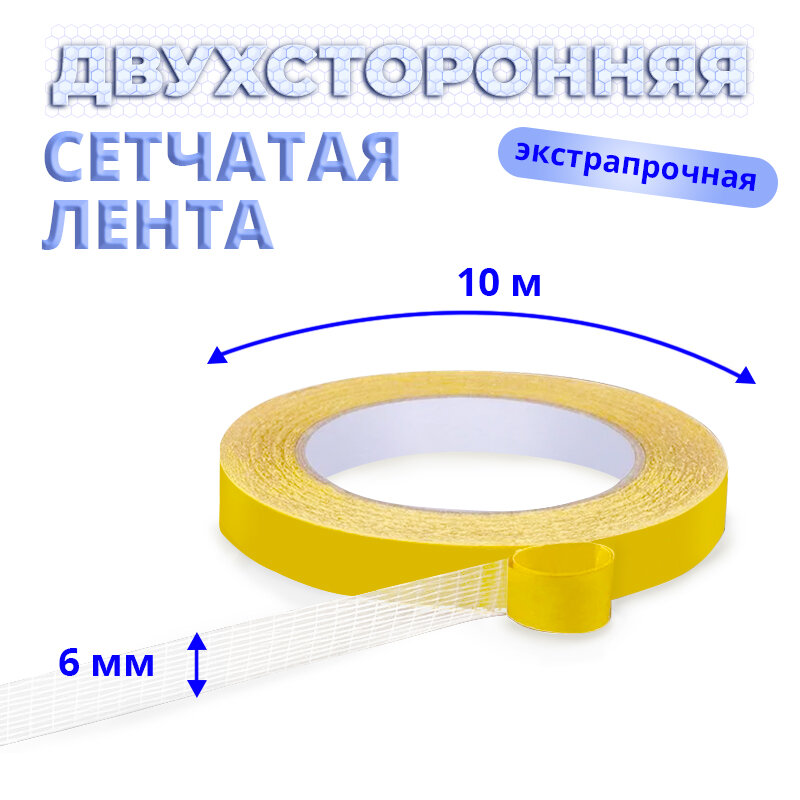 Двухсторонняя сетчатая самоклеящаяся крепежная лента 6мм*10м информация: