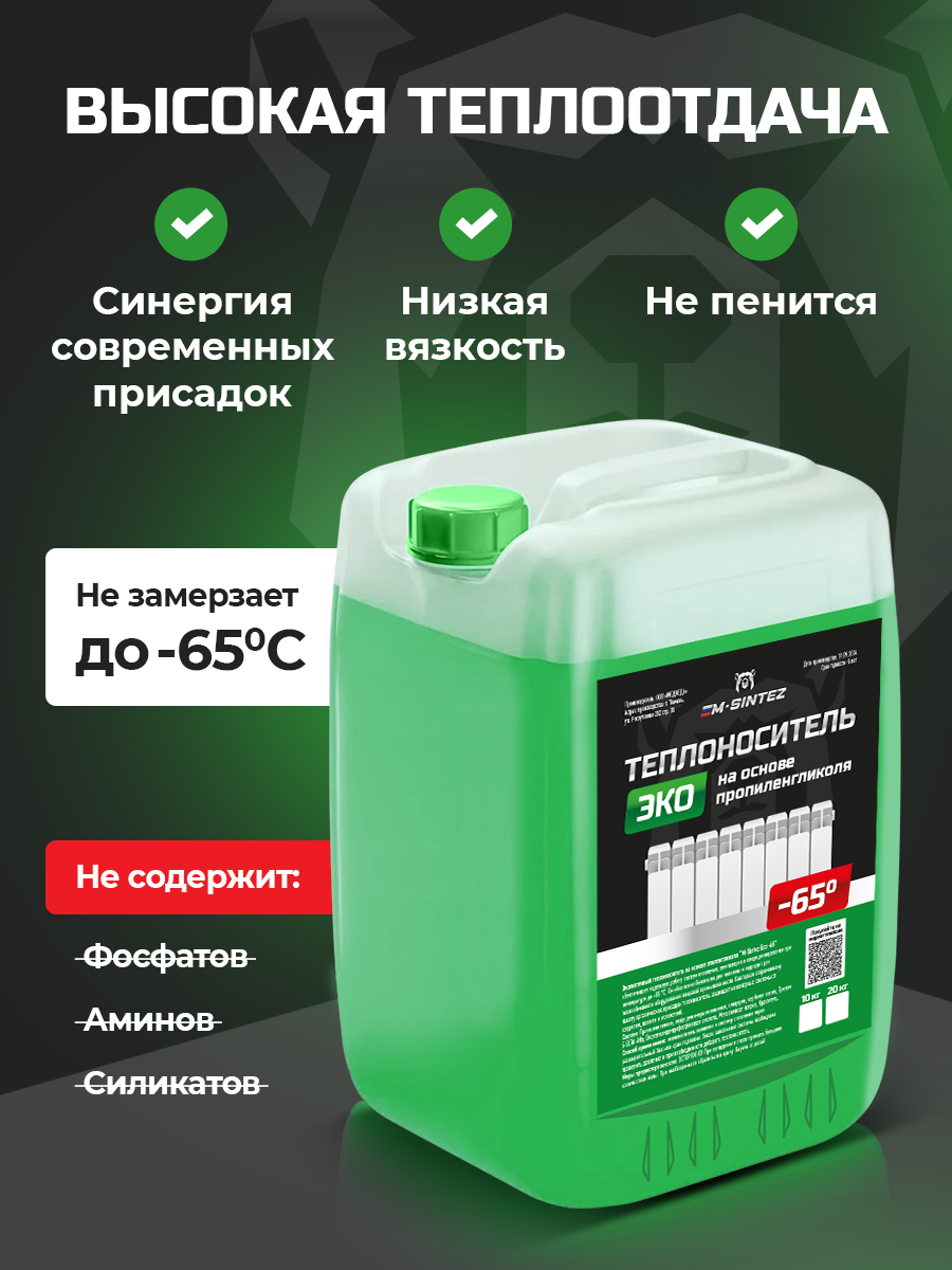 Теплоноситель ЭКО M-SINTEZ, на основе пропиленгликоля, 10 кг информация:
