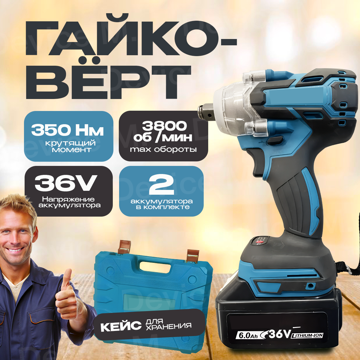 Отзывы на Гайковерт ударный аккумуляторный 350Hm, 36В, 6Ач, 2 аккумулятора, кейс, 25 насадок