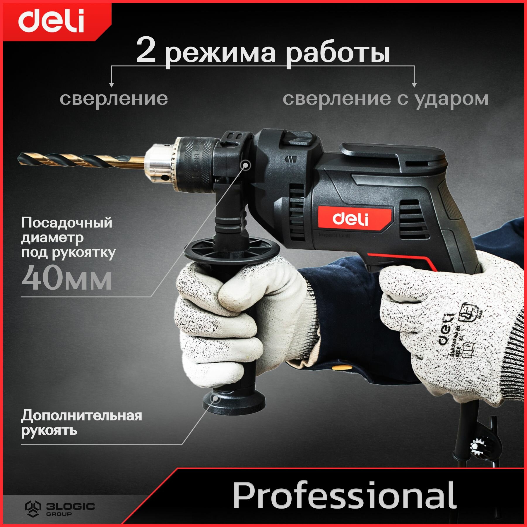 Профессиональная ударная дрель Deli DE-CZ13-1E (680Вт, ключевой патрон 13мм, 4800 уд/мин, 3000 об/мин) информация: