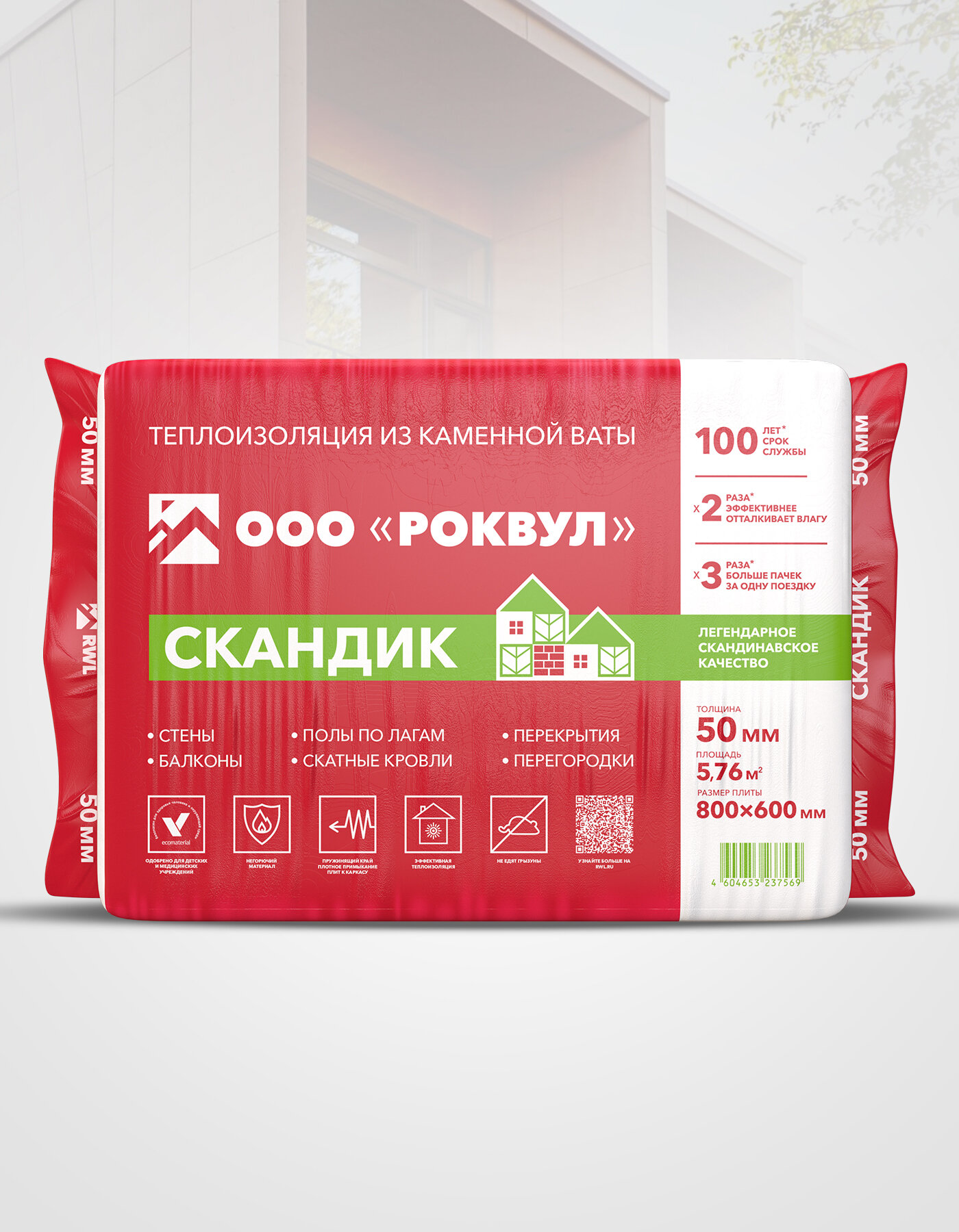 Теплоизоляция Роквул Лайт Баттс Скандик, 50 мм 6 уп 34,56м2 1,78м3 8 436 ₽