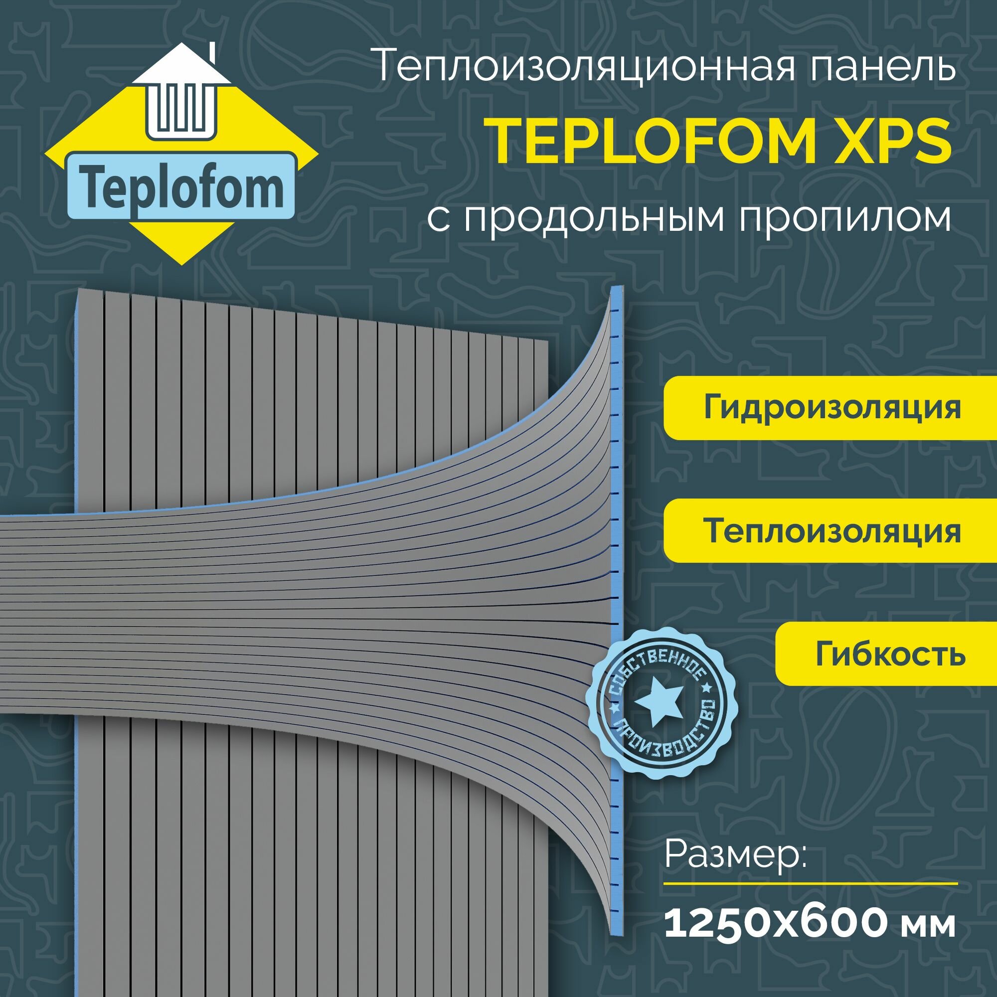 Теплоизоляционная панель TEPLOFOM+100 XPS-02 (двухсторонний слой) 1250x600x100мм продольный пропил информация: