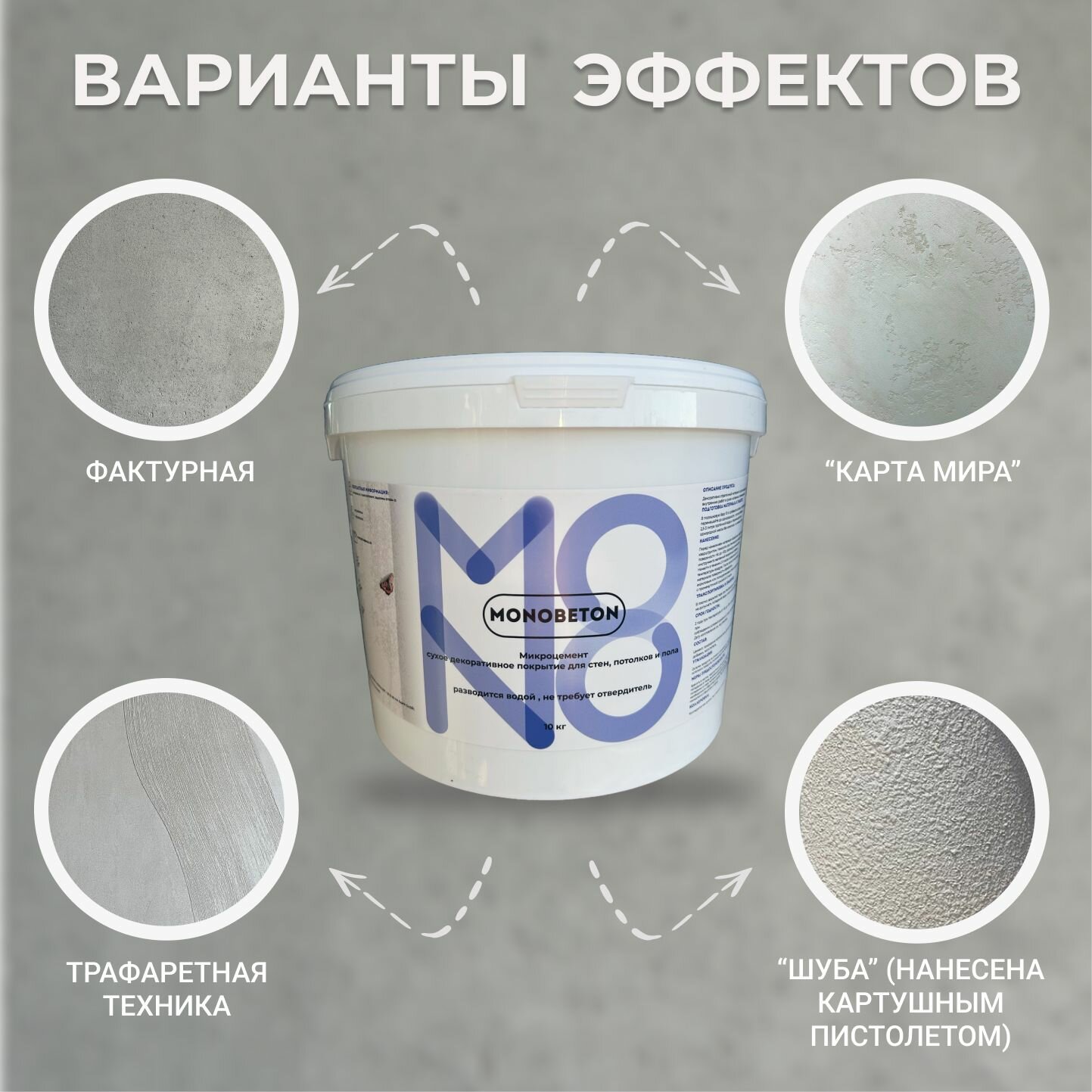 Декоративная штукатурка Микроцемент MONOBETON Фактурный информация: