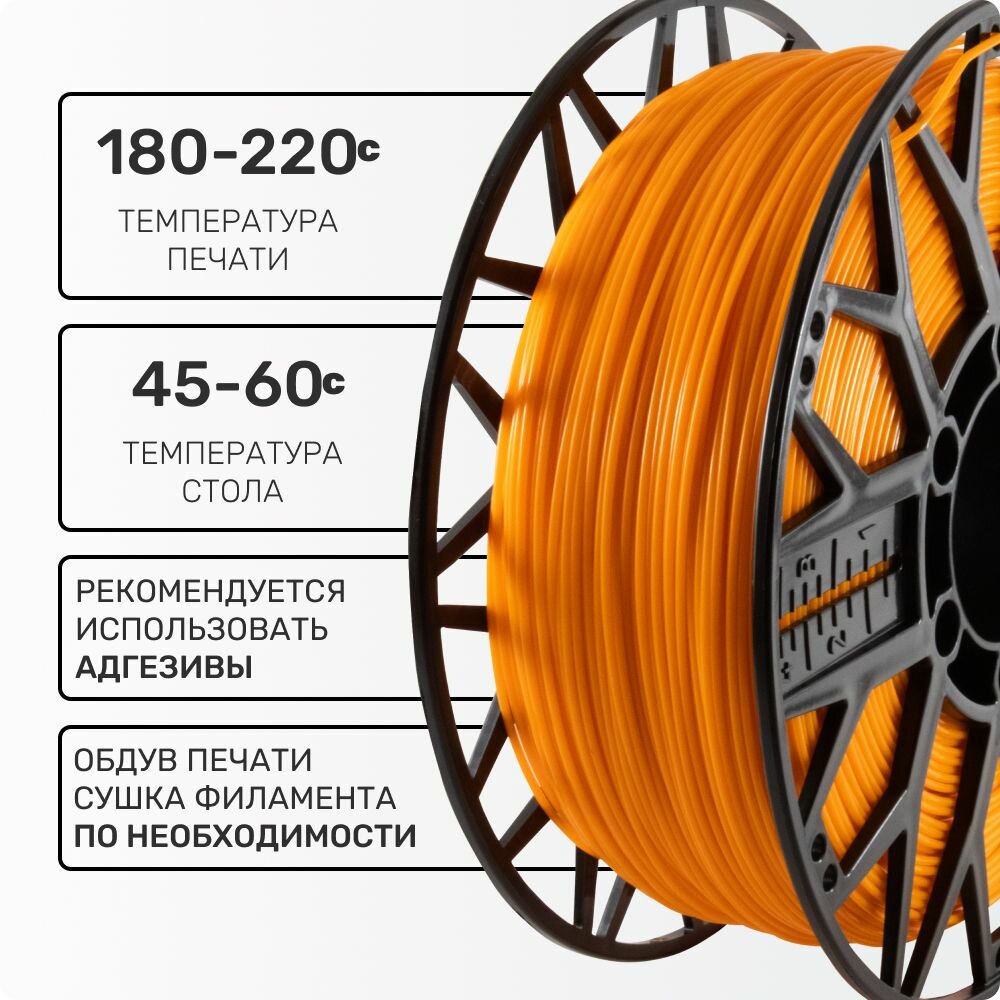 Пластик для 3D принтера PLA. Оранжевый. 1,75мм, 0,5 кг. информация: