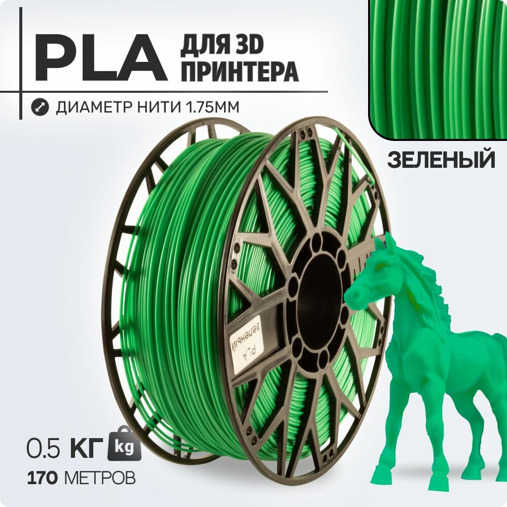 Пластик для 3D принтера PLA. Зеленый. 1,75мм, 0,5 кг. информация: