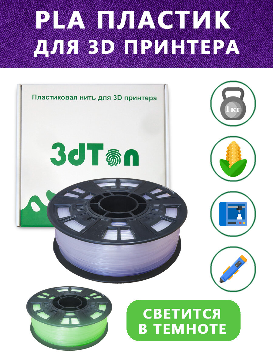 10 цен на Светящийся PLA пластик для 3D принтера 1 кг, фиолетовый