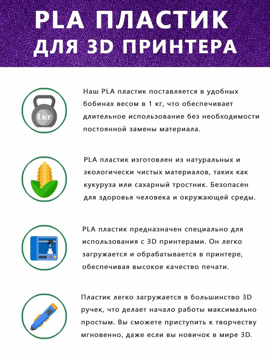 Светящийся PLA пластик для 3D принтера 1 кг, фиолетовый информация: