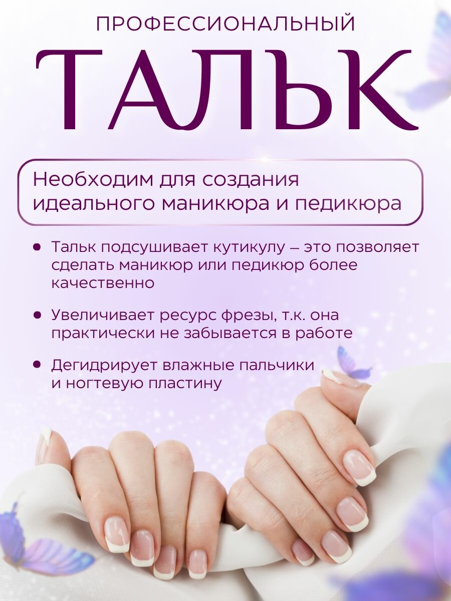 Тальк для маникюра и педикюра 100 мл, присыпка для кутикулы информация: