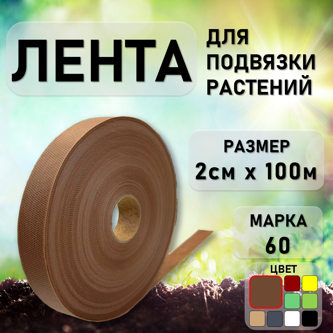 Лента садовая для подвязки растений и деревьев 20мм*100м Коричневая информация:
