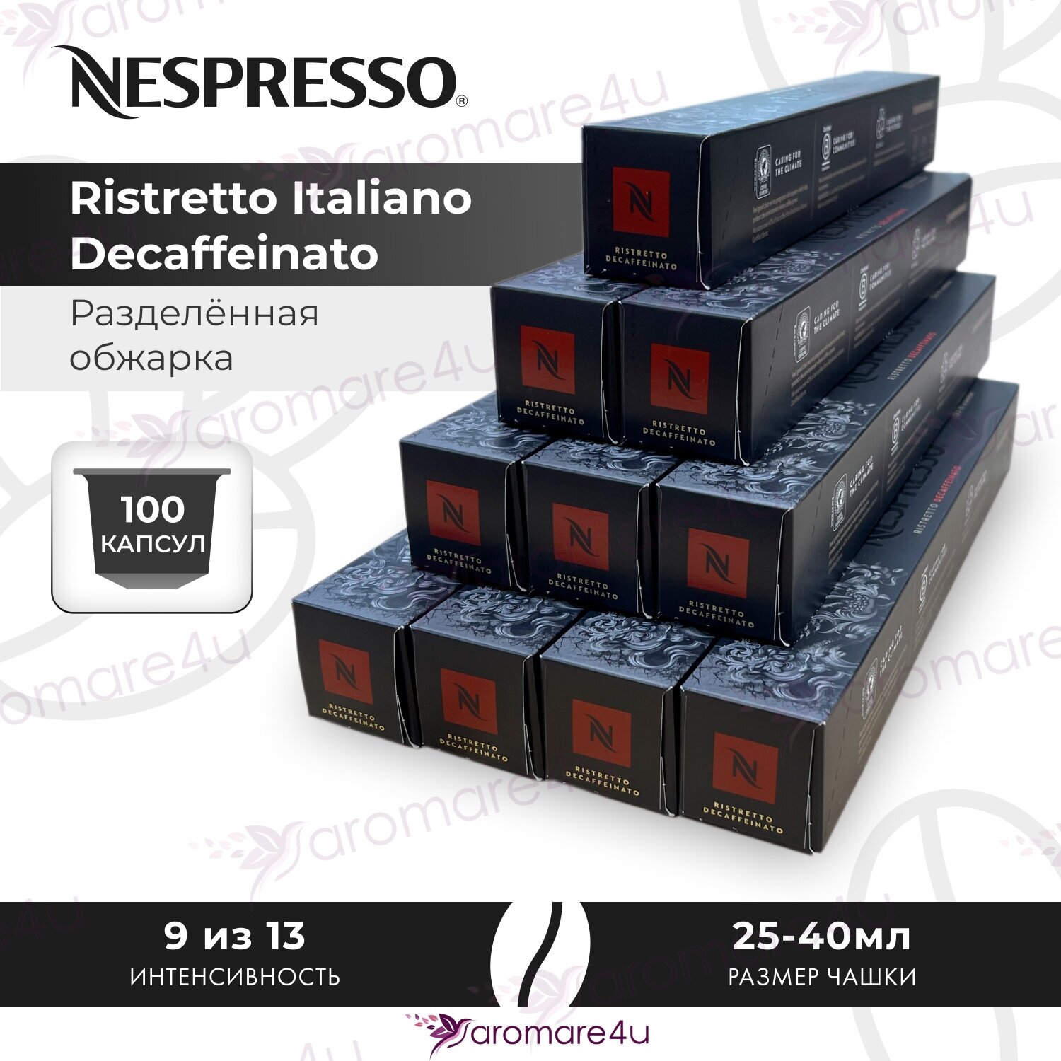 Кофе в капсулах Nespresso Ispirazione Ristretto Italiano Decaffeinato, 10 кап. в уп, 10 уп. информация: