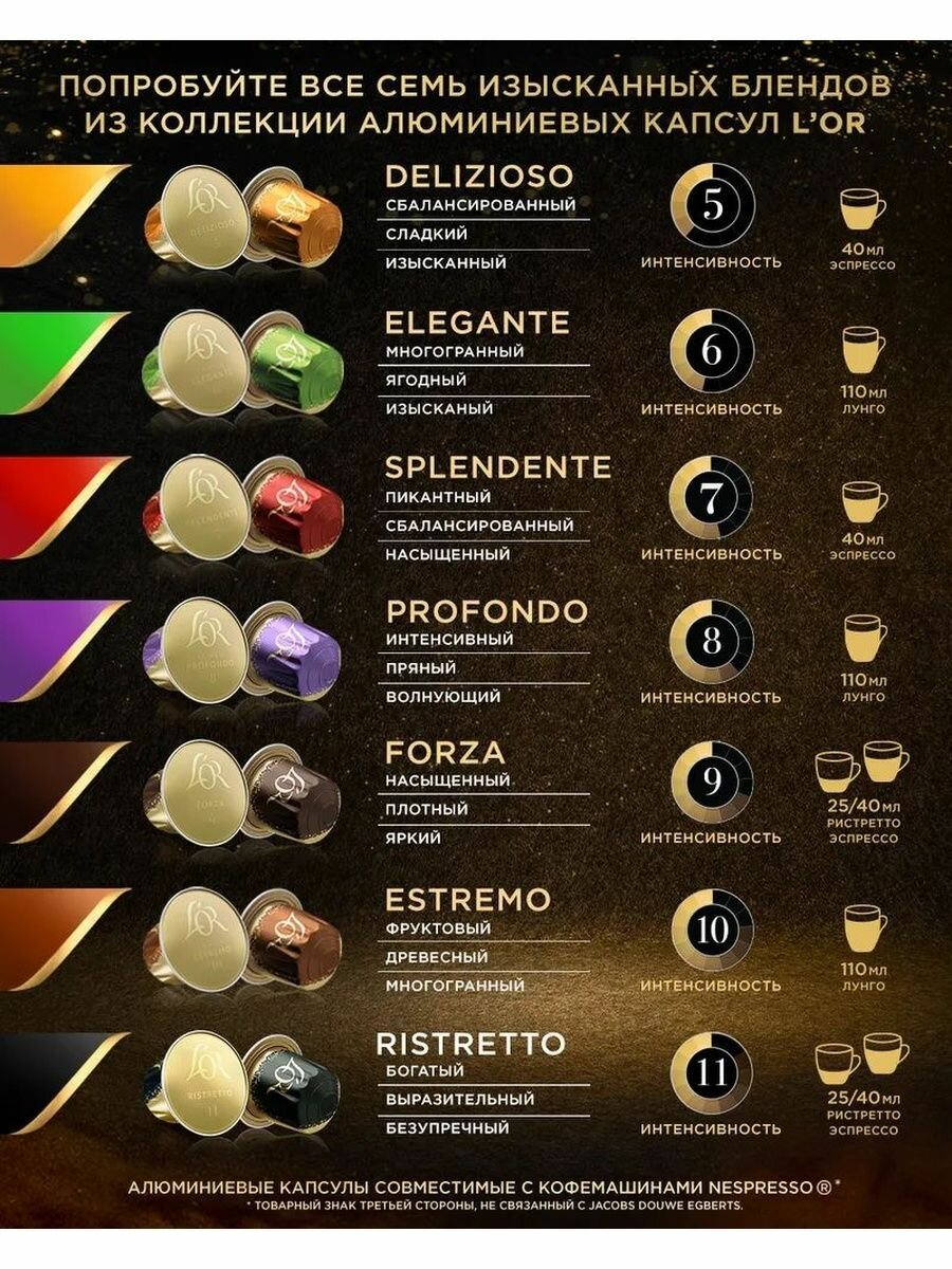 10 цен на Кофе в капсулах L'OR Espresso Lungo Estremo для системы Nespresso, 100 порций