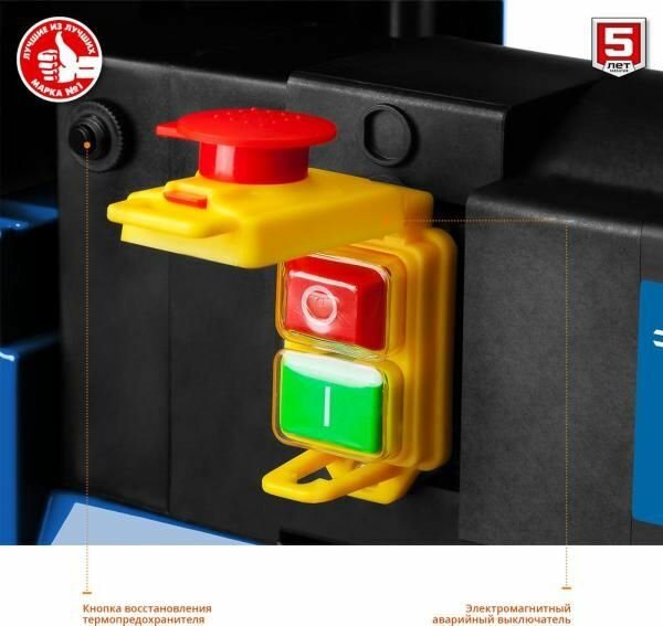 | Комплект поставки | Станок рейсмусовый 1 шт. Рукоятка регулировки высоты 1 шт. Калибр установки ножей 1 шт. Опора резиновая 4 шт. Ключ гаечный 1 шт. Ключ имбусовый 1 шт. Инструкции по безопасности 1 экз. Руководство по эксплуатации 1 экз. |
