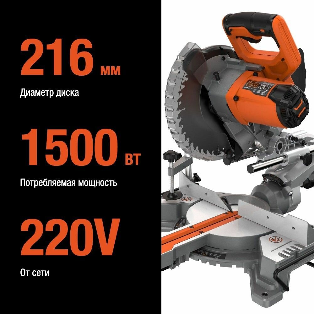 Торцовочная пила BLACK+DECKER, 1500 Вт, 216 мм, 4800 об/мин, BES701 информация: