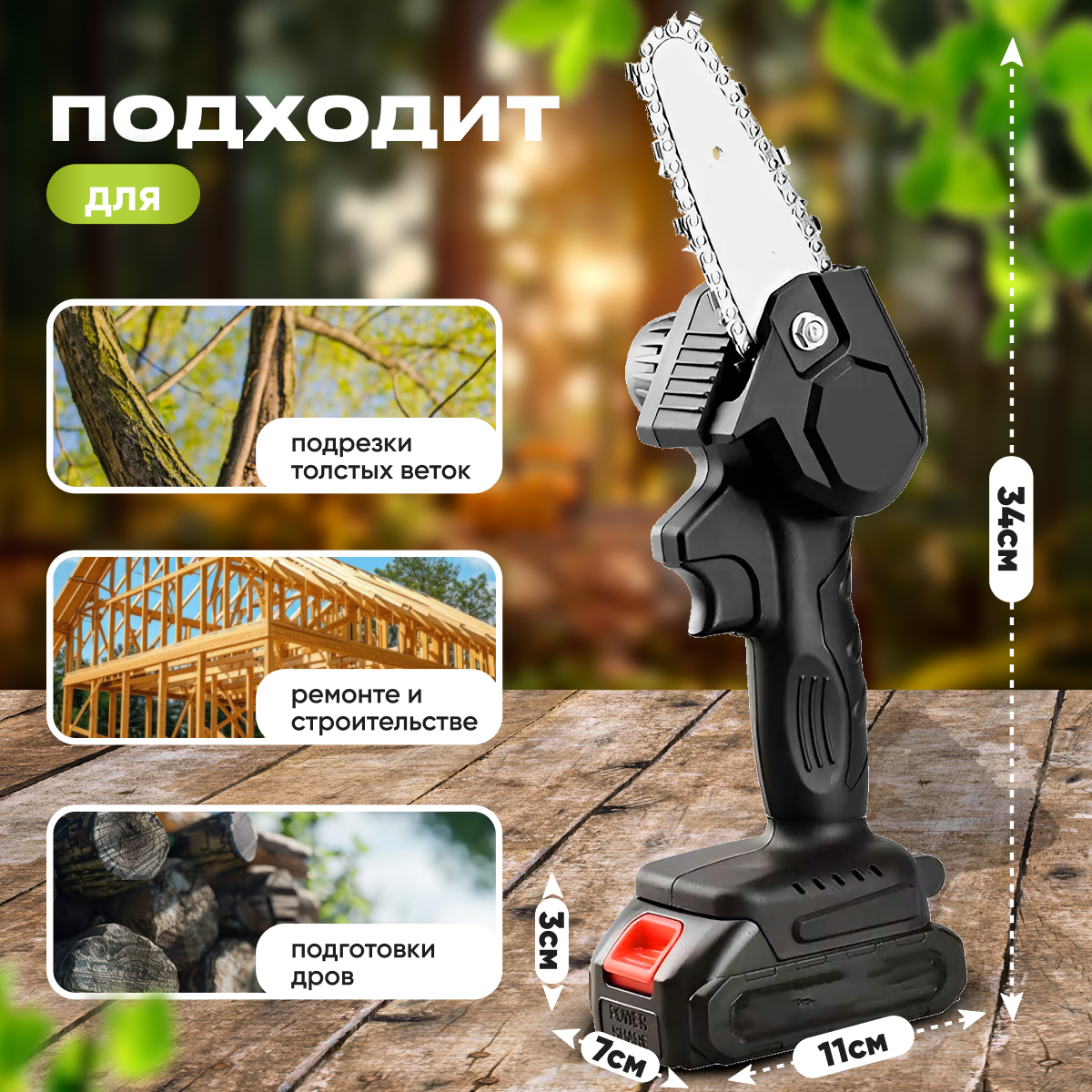 Цепная мини пила аккумуляторная ручная садовая, Портативная цепная аккумуляторная бензопила