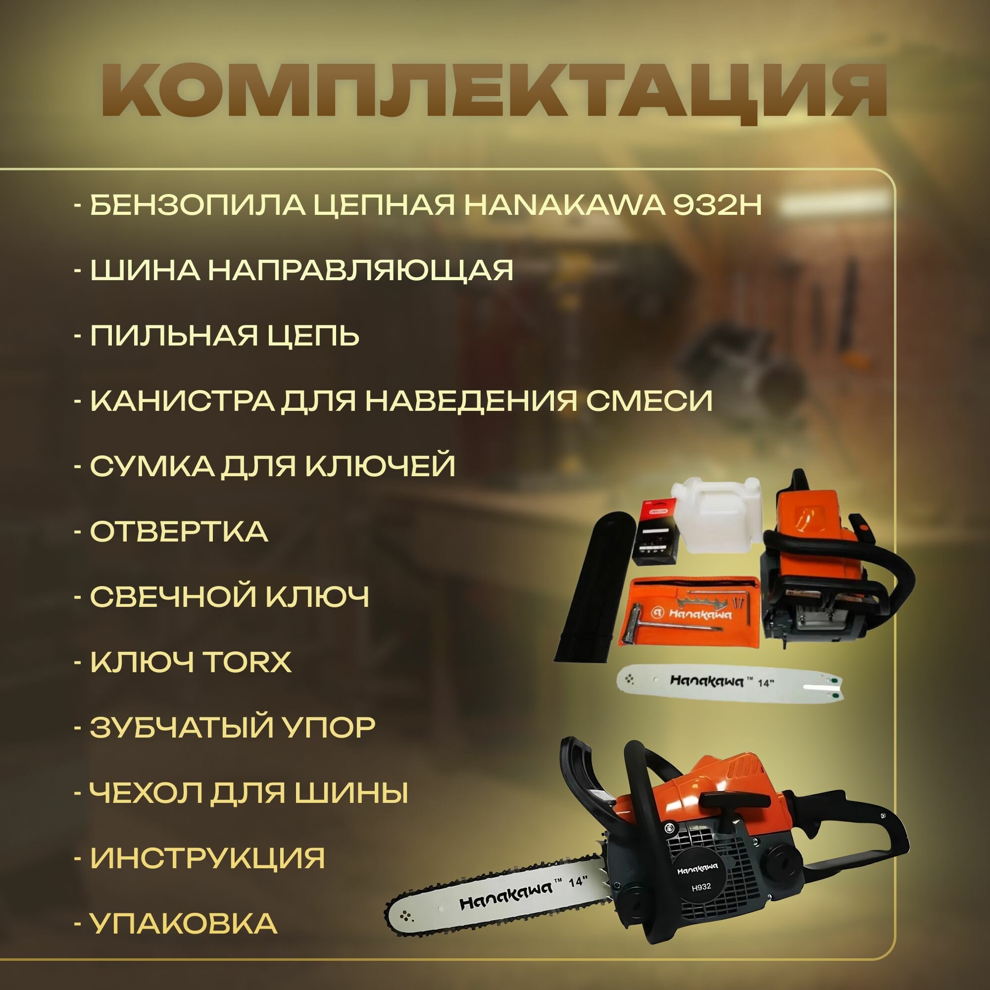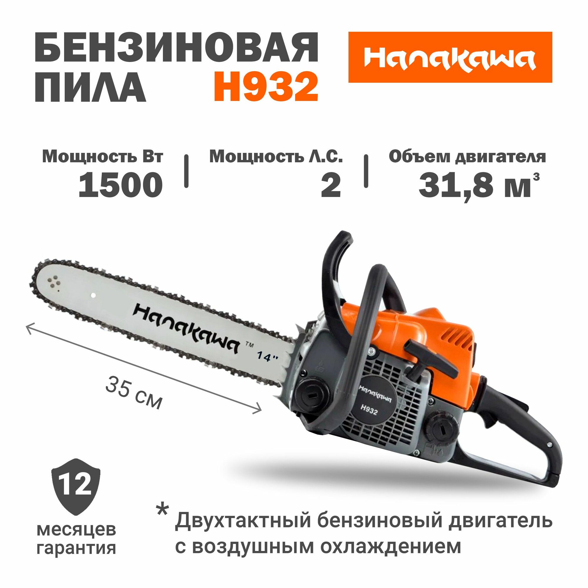Бензопила цепная пила бензиновая Hanakawa H932 шина 35 см информация:
