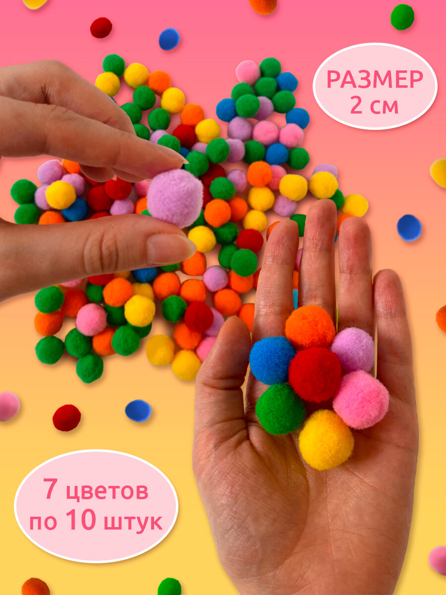 | Комплектация | Помпоны - 70 штук (7 цветов) |
