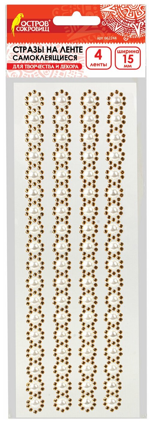 Стразы самоклеящиеся на ленте "жемчужные", 15 мм, 4 ленты, на подложке, остров сокровищ, 662244